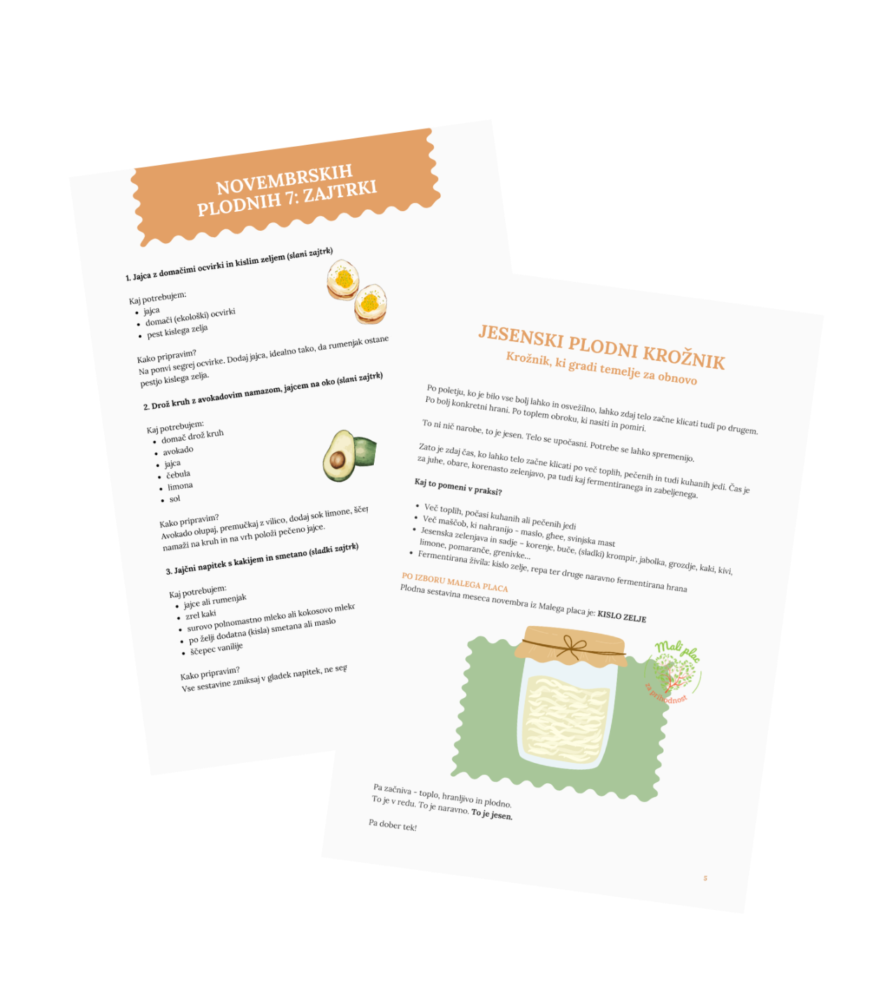 Tehnično je to e-knjižica z 28-imi plodnimi recepti, da lahko daš malo možgančke na off in nekdo namesto tebe poskrbi za razmišljanje o tedenskem kuhanju.